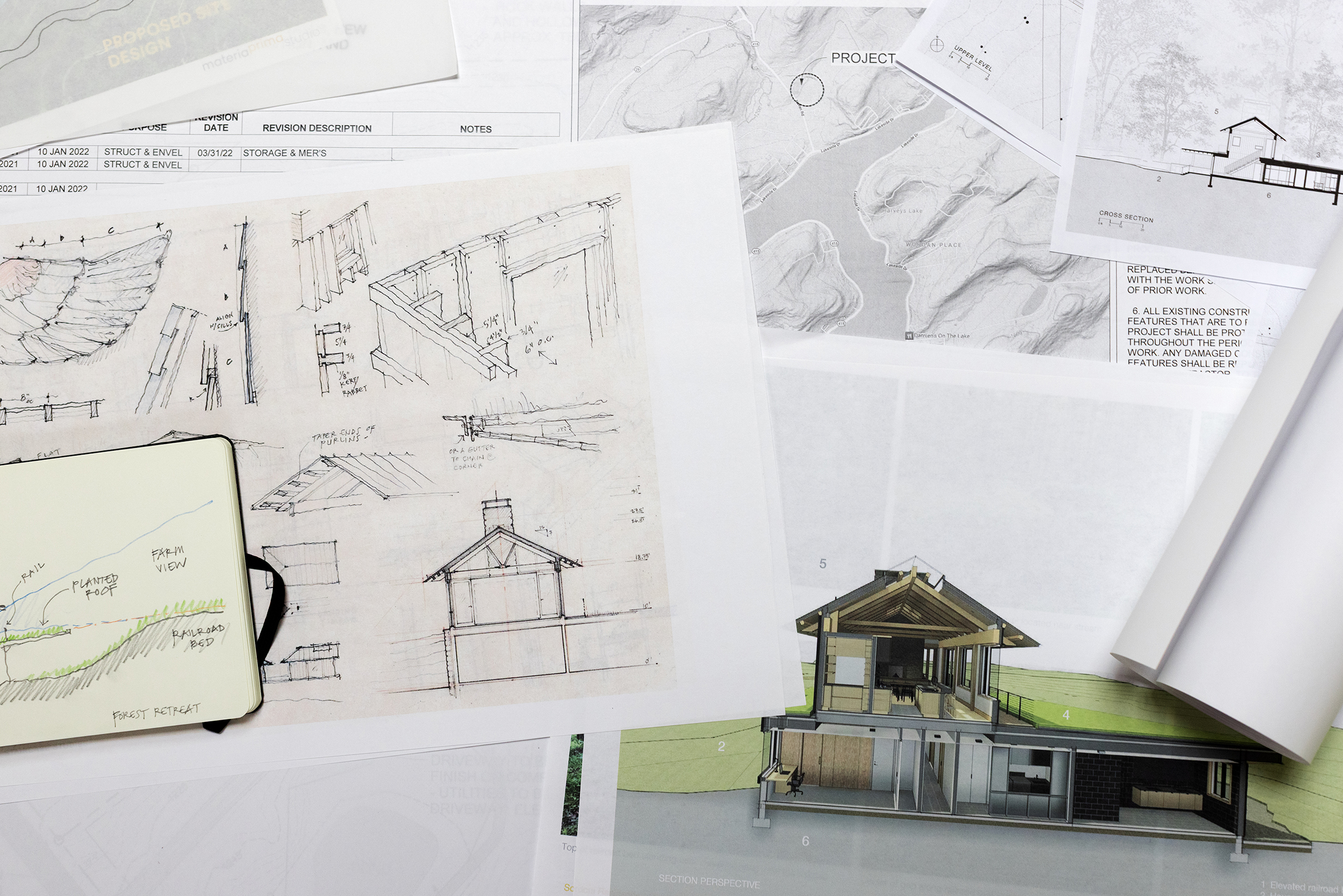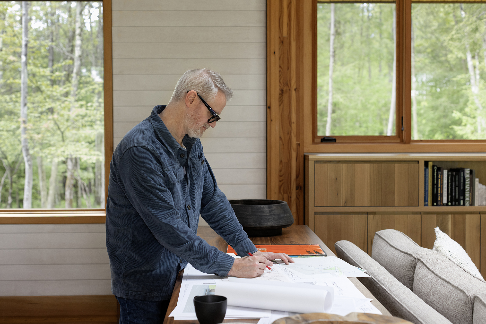 주인 Jenn와 Bill에게 비전은 명확했다: 주변 환경과 깊이 연결되면서도 시대를 초월하는 느낌의 집을 원했다. “우리 집이 이 자리에 항상 있었던 것처럼 느껴졌으면 좋겠다.”라고 Jenn은 말했다. 이 의도는 재료 선택에서 공간의 배치에 이르기까지 디자인의 모든 측면에 반영되어 — 호지가 말한 “집이 존재하도록 이끌리는 의지”를 만들어낸다.