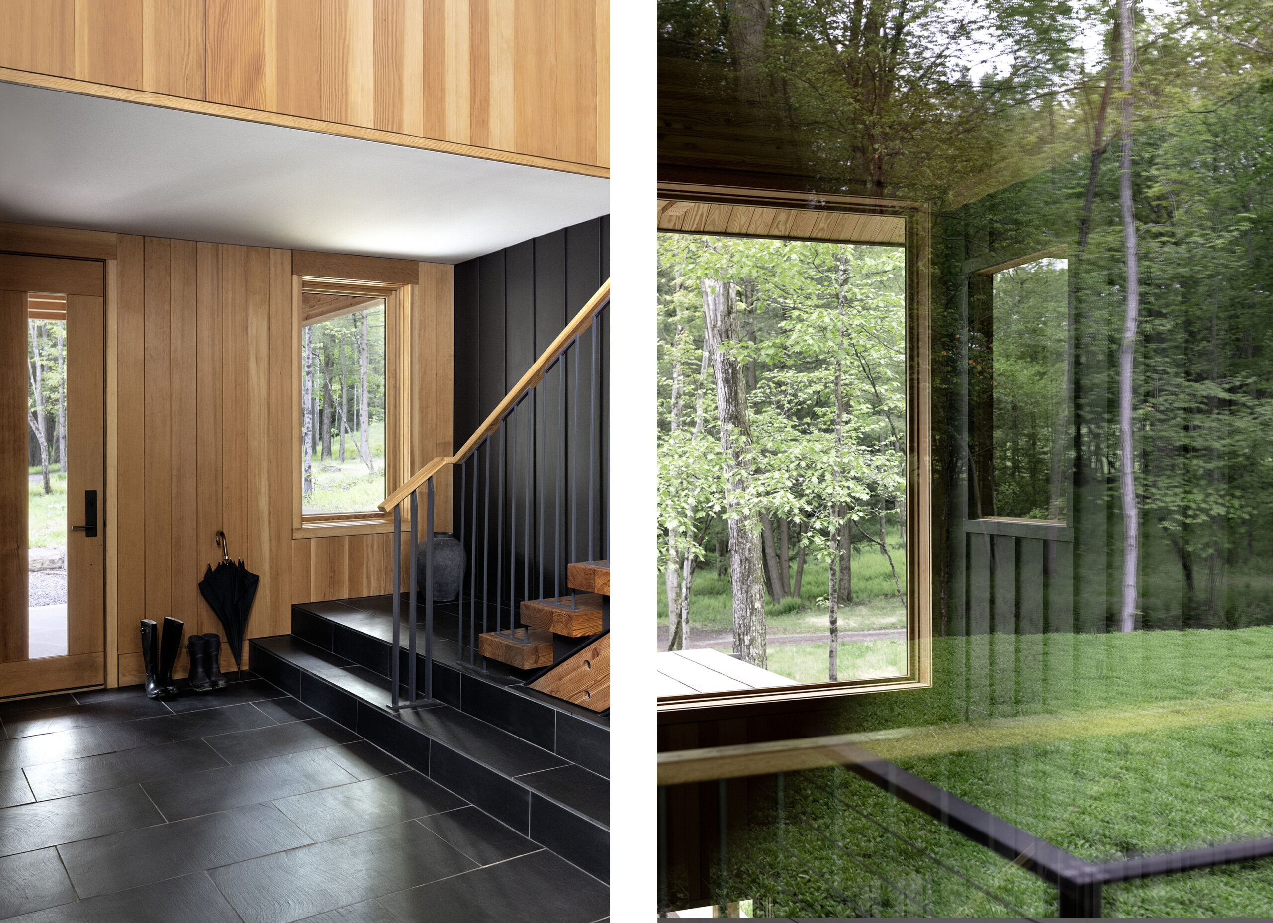 “숲 속으로 굽이치는 진입로를 따라 들어가면 긴장을 풀고 집에 도착한다.”라고 Jenn은 말했다. “그리고 도착하면 아래층에 있다.” 호지는 “그 계단은 당신을 더 높은 건물 위의 작은 건물로 이끌며, 그것은 ‘계시의 순간’이라고 설명했다.”