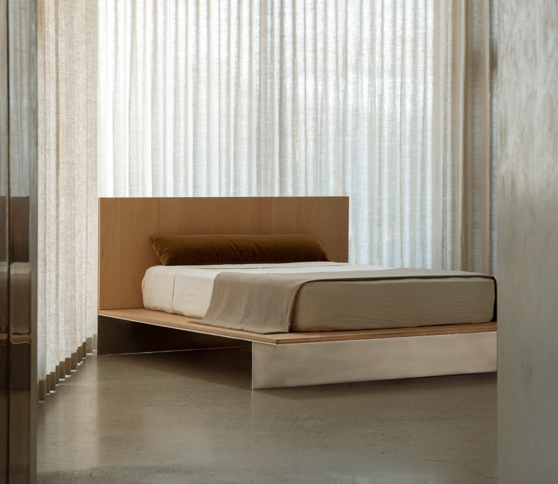 Element Bed는 견고한 더글러스 포엝(Douglas Fir)과 알루미늄으로 만들어지며, 접합은 매끈한 기계적 나사 고정으로 이루어지고 접착제를 사용하지 않는다. 모든 부품은 분해 가능하고 재료적으로도 구분되어 있어 재활용이나 수리가 용이하다. 형태는 단순하지만 의도적이며, 시각적 균형은 질량과 공허의 비율에서 비롯된다. Kalon은 배치당 하나의 모델로 생산하기에, 기본 구조를 바꾸지 않고도 개별 사양에 맞춰 쉽게 조정할 수 있다. 재료는 시간이 지나며 형태가 변하고 날씨에 따라 다르게 변하는데, 이 조각은 그러한 변화를 지지하도록 설계됐다.